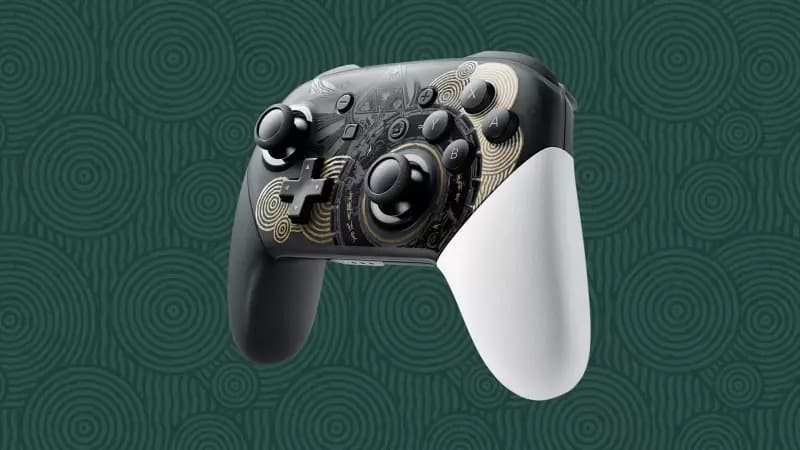 Nintendo Switch OLED поставляется с белыми Joy-Cons, но в этом случае можно рассчитывать на цвета, ассоциирующиеся с The Legend of Zelda: Tears of the Kingdom. Производитель также позаботился об небольшом изменении док-станции, Pro Controller и чехла.