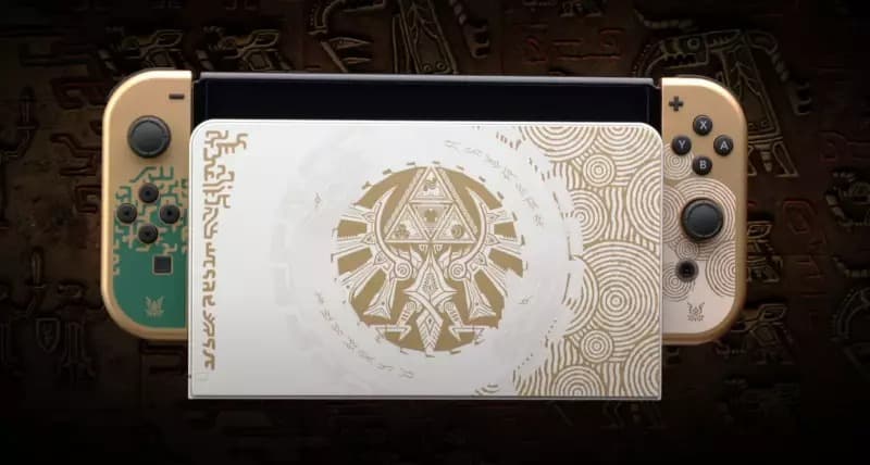 Обновленная версия консоли, подготовленная по случаю выхода The Legend of Zelda: Tears of the Kingdom, не стала производительней и не обладает уникальными возможностями. Создатели просто украсил устройство стилизованными орнаментами.