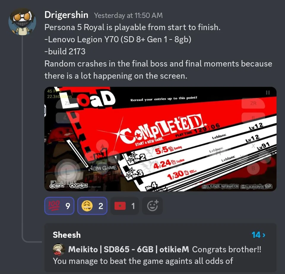 В сообществе ценителей эмуляторов объявили о появлении первой персоны, которая прошла Persona 5 Royal на мобильном устройстве. Для этого Drigershin использовался эмулятор Skyline.