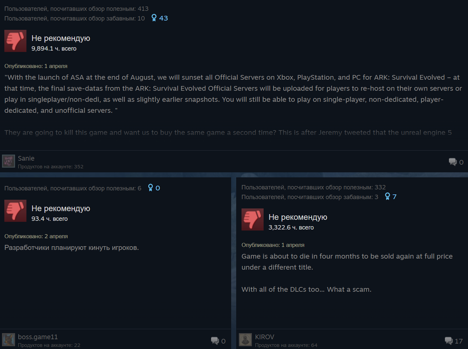 ARK Survival Evolved потихоньку атакуют негативными отзывами в Steam.