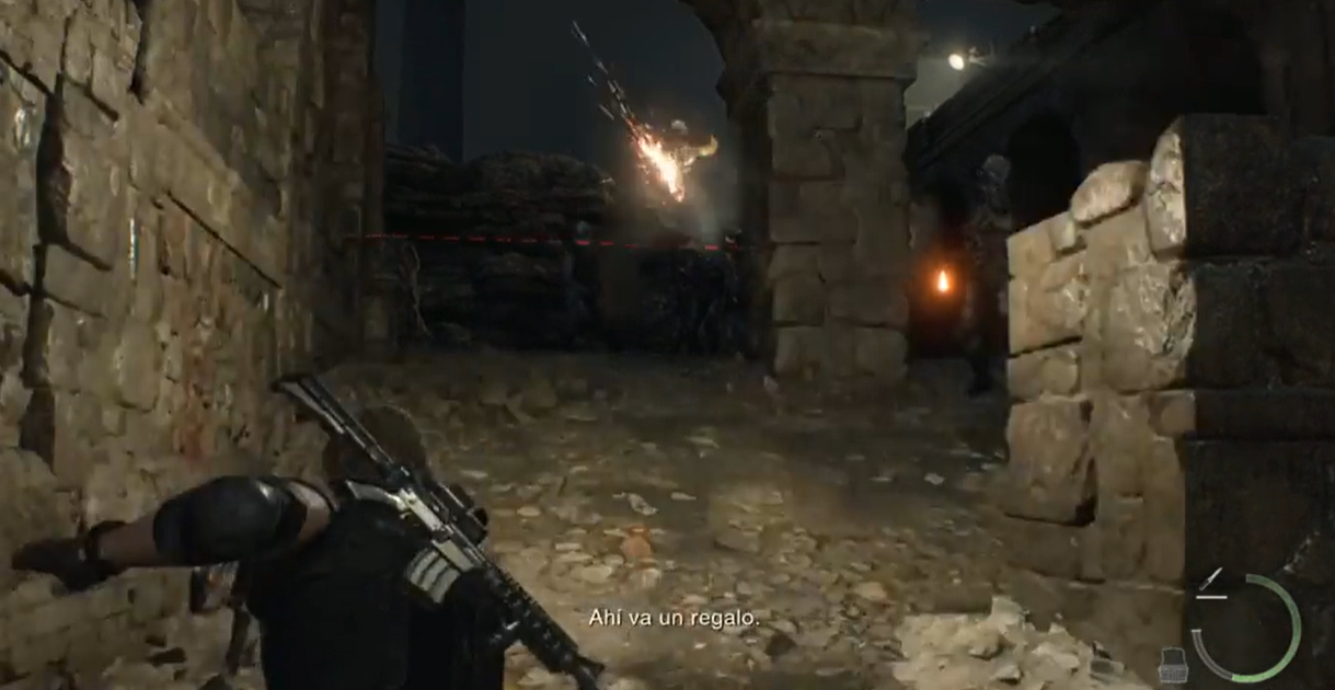 В результате граната упала на землю и взорвалась. roki повезло, поскольку если бы она упала чуть ближе, то главному герою ремейка Resident Evil 4 досталось бы от собственной гранаты.