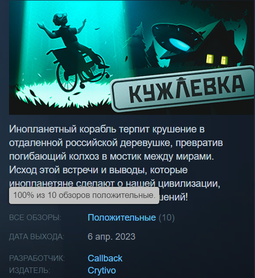 Так удачно получилось, что у Кужлевки 100% положительных отзывов в Steam (их пока не очень много).