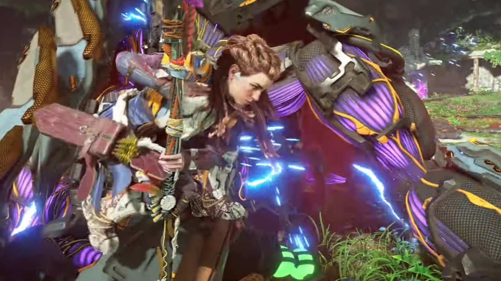 Guerrilla Games опубликовала ролик в заблокированной в России социальной сети, но некоторые блогеры перезалили на YouTube. Героиня активно пользуется тросами: для опутывания роботов и эффектного перемещения.