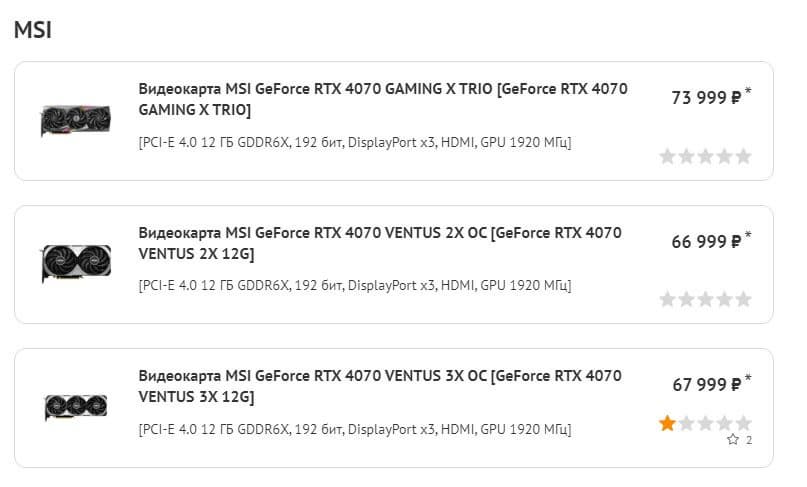 На момент написания этих строчек в наличии имеются только видеокарты MSI, а в будущем магазин обещает расширить ассортимент моделями от Gigabyte и Palit. Однако цены могут оттолкнуть потенциальных покупателей.