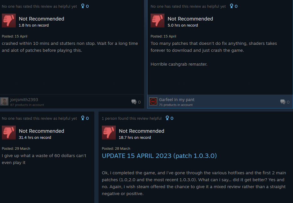 Как и прежде, комментарии к патчу 1.0.3.0 для The Last of Us Part 1 отключены. Недовольство выражают на форуме в Steam и в обзорах.