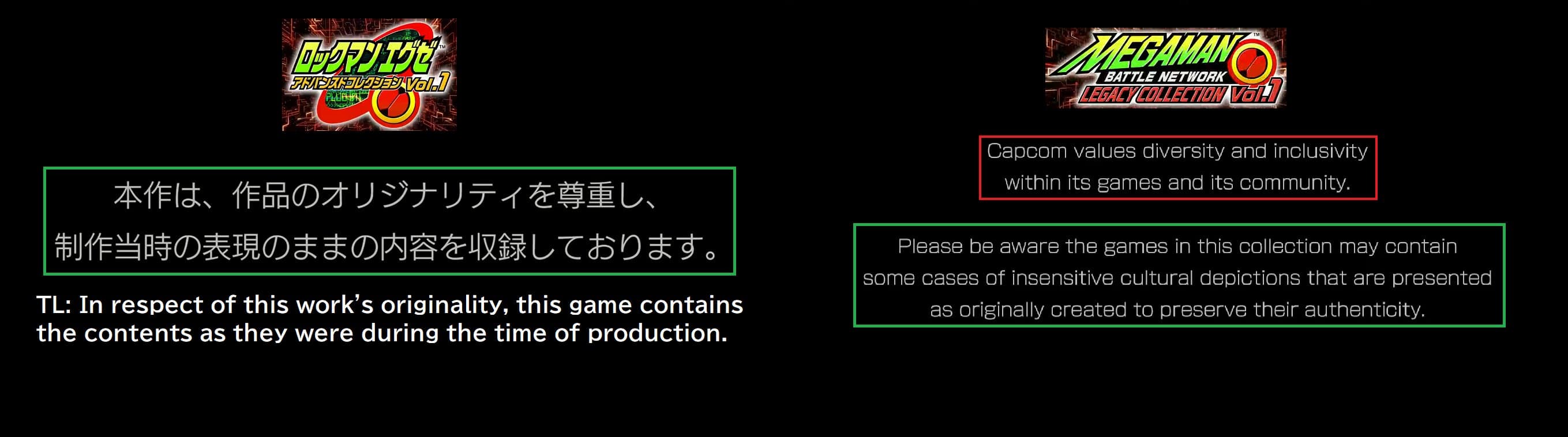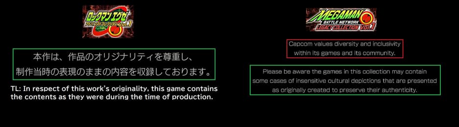 Capcom не стала переделывать игры, сохранив спорные моменты, чтобы передать аутентичный опыт серии Mega Man Battle Network. При запуске игроков встречает предупреждение о наличии специфического контента.
