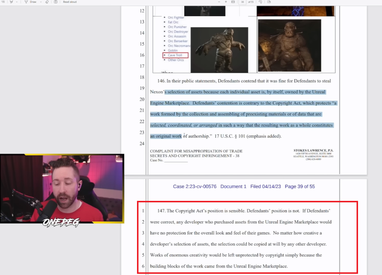 Если бы ответчики [разработчики Dark and Darker] были правы, любой разработчик, купивший ассеты в Unreal Engine Marketplace, не имел бы [возможности защитить свою игру]. Независимо от того, насколько творчески разработчик подошёл к подбору ассетов, всё может быть скопировано при желании любым другим разработчиком. Работа огромного творческого потенциала осталась бы незащищенной авторскими правами просто потому, что "строительные блоки" для неё взяли на Unreal Engine Marketplace».