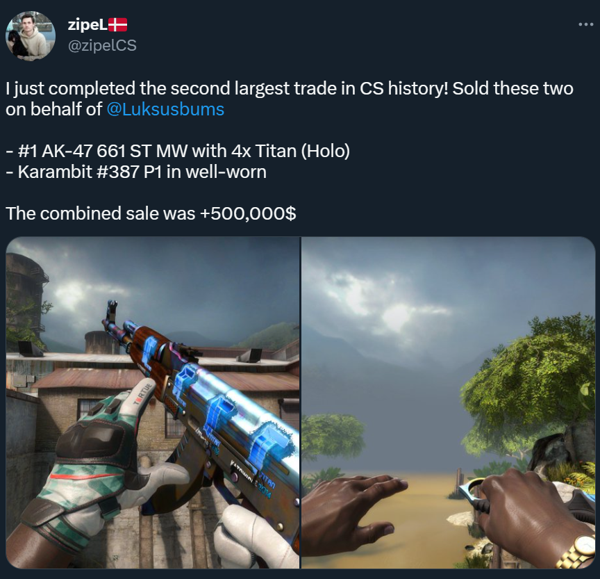 zipeL написал о второй крупнейшей сделке в истории Counter-Strike Global Offensive, но в комментариях его поправили — она на 3 месте.