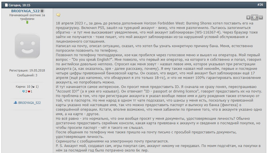 Пользователь турецкого PlayStation Store из России начали жаловаться на баны аккаунтов. Досталось в том числе тем аккаунтам, в которые инвестировали значительные суммы.