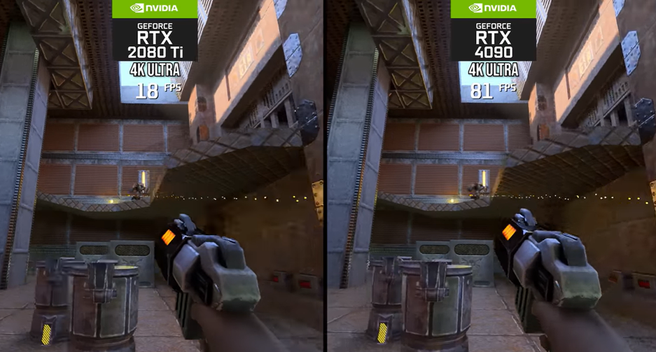 Раньше в Quake 2 RTX можно было получить около 20 FPS на GeForce RTX 2080 Ti при разрешении 4К, а сегодня современная видеокарта GeForce RTX 4090 позволит получить более 80 FPS. Такой прогресс связан сразу с несколькими факторами.