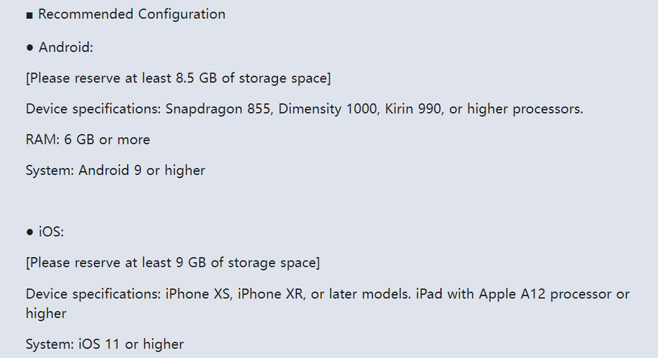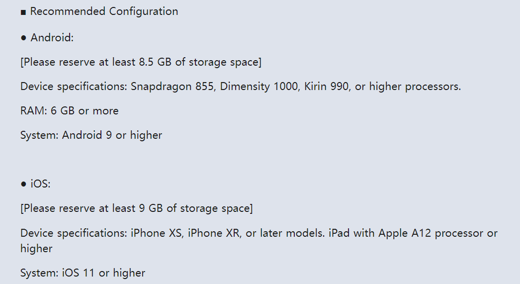 Рекомендуемые системные требования Honkai Star Rail на мобильных устройствах: