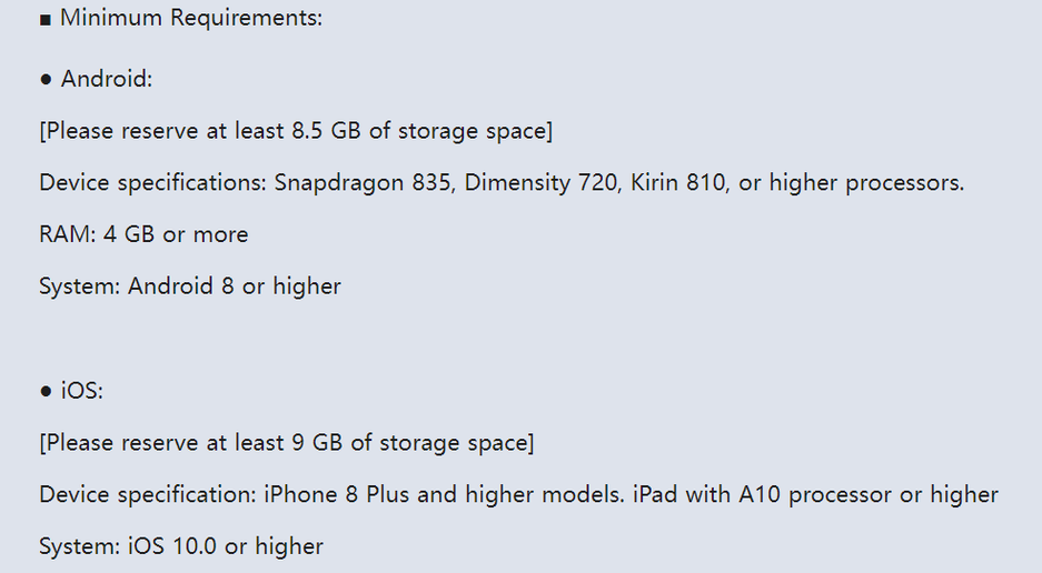 Минимальные системные требования Honkai Star Rail на мобильных устройствах: