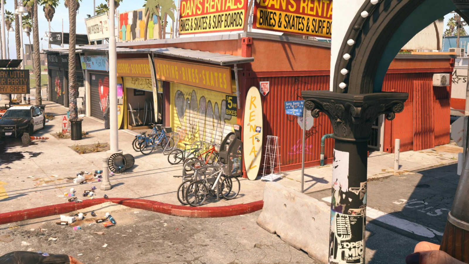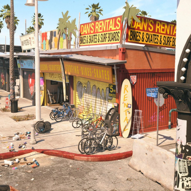 Так получилось, что в некоторых случаях видение разработчиков Dead Island 2 выглядит даже лучше, чем реальность. Какие-то места разработчики воссоздавали очень близко к оригиналу, но временами позволяли себе что-то основательно поменять, например раздолбили дорогу.