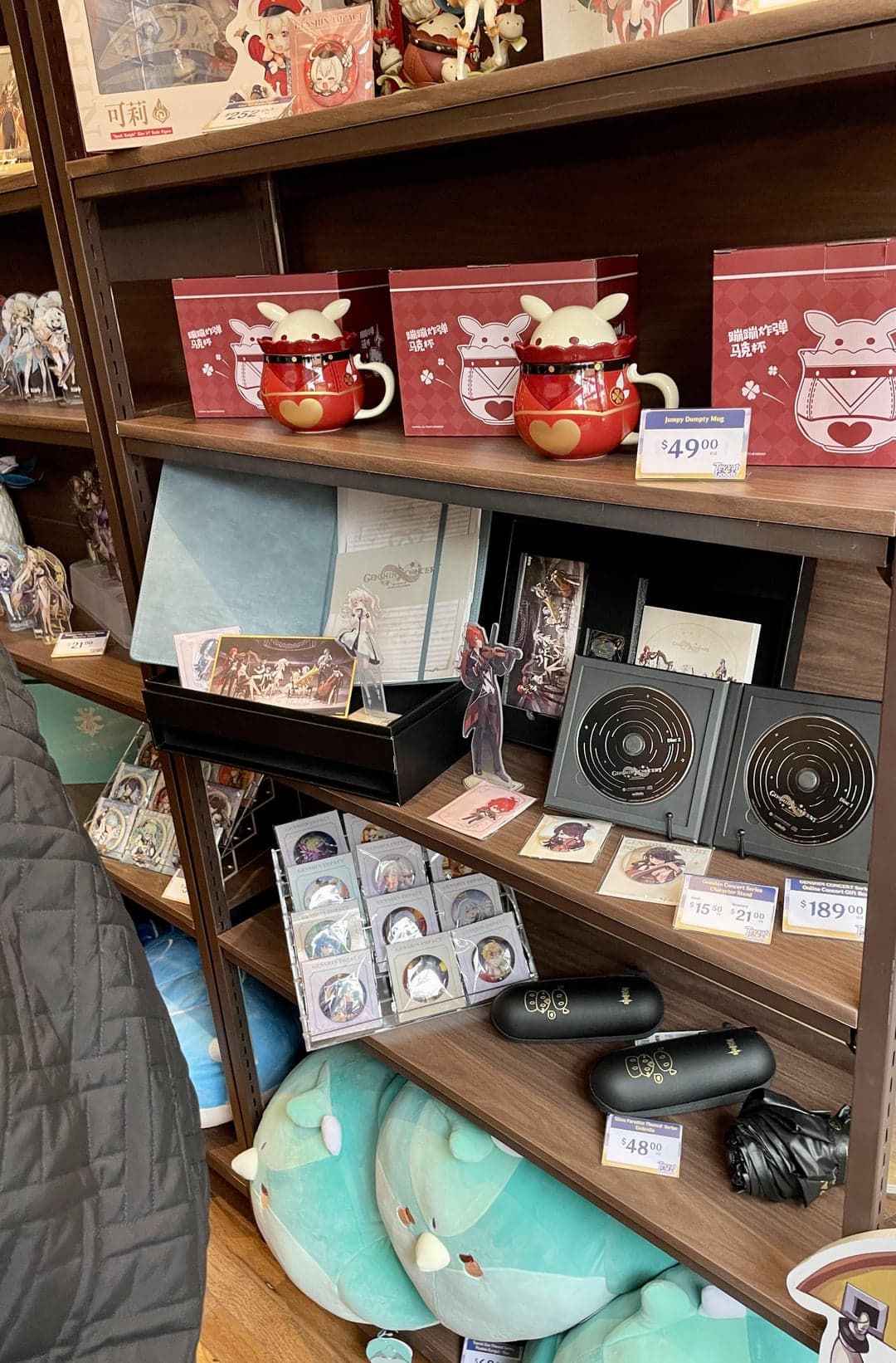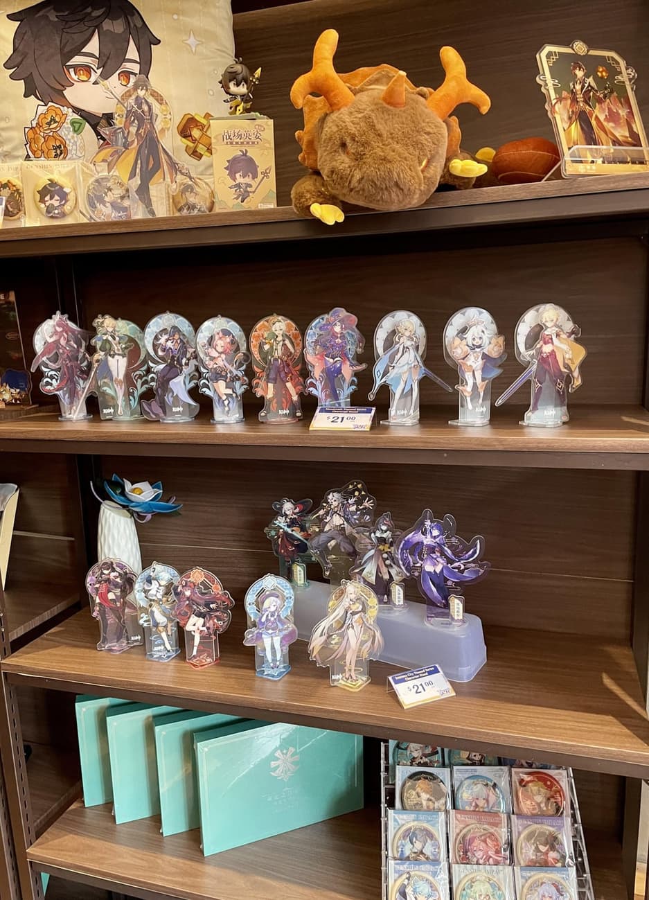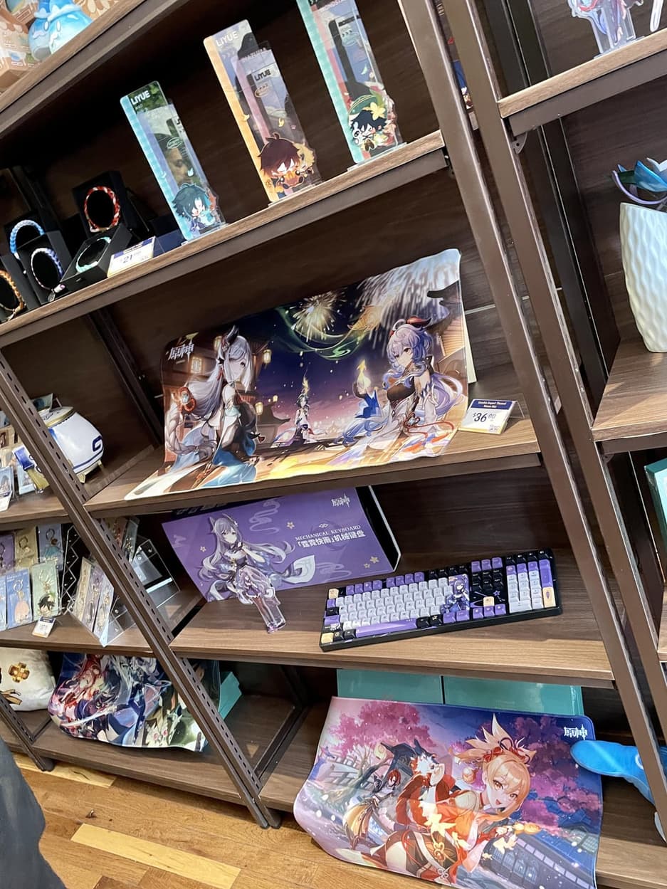 Далеко не у всех есть возможность отправиться в Нью-Йорк. Поклонники Genshin Impact делятся фото из магазина: в наличии масса продукции с полюбившимися героями и косплеерши.