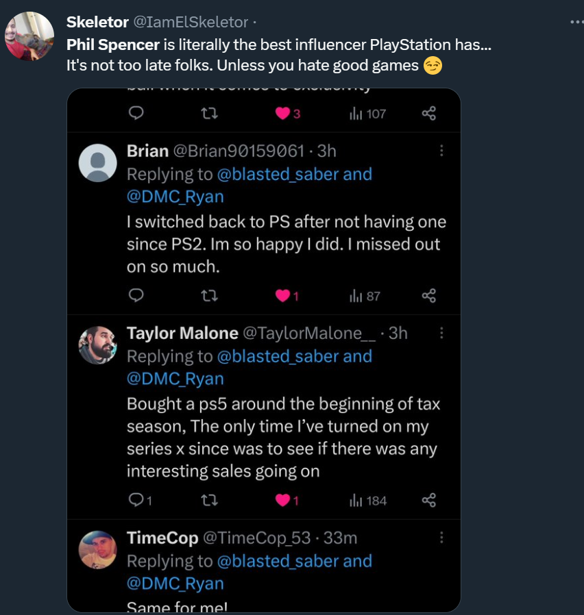 Пользователи также обратили внимание, что политика Фила Спенсера приводит к тому, что Xbox становится настоящей рекламой консолей PlayStation: некоторые геймеры присматриваются к консолям Sony или уже купили.