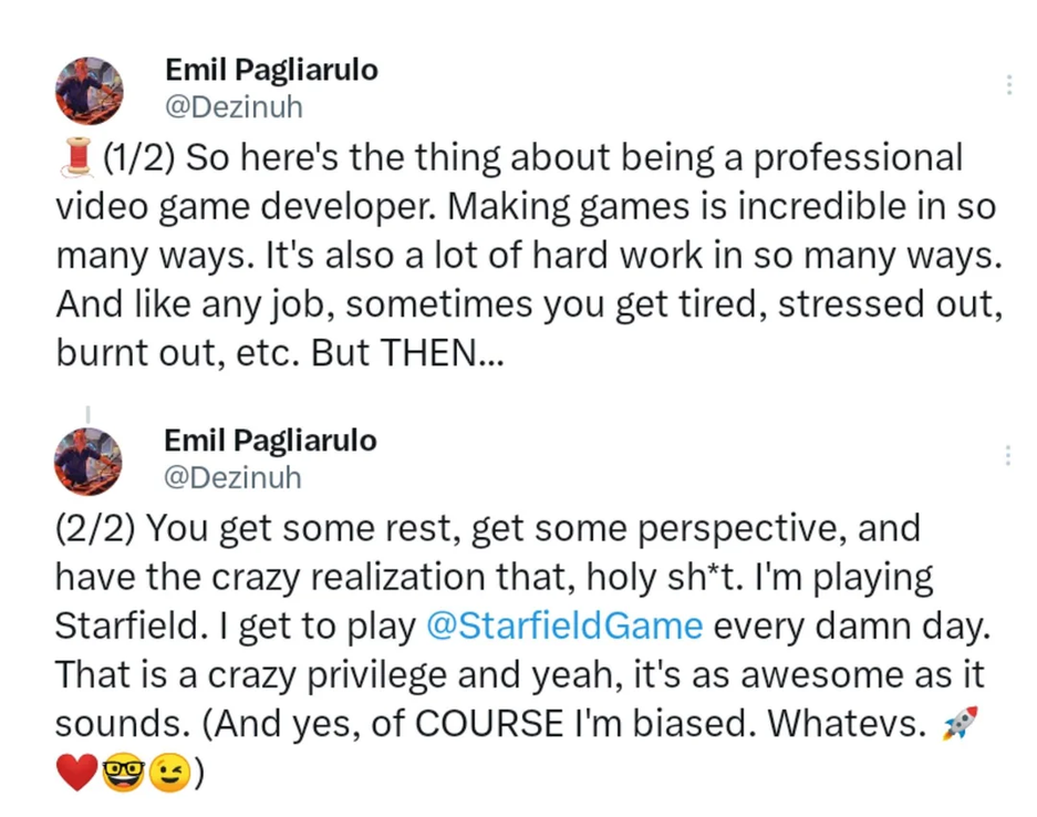 Некоторые персоны занялись самоиндоктринацией (насыщают себя позитивными мыслями). Например, нашли человека, который поиграл в Starfield и похвалил игру. Есть нюанс — это разработчик и он не скрывает, что пристрастный.