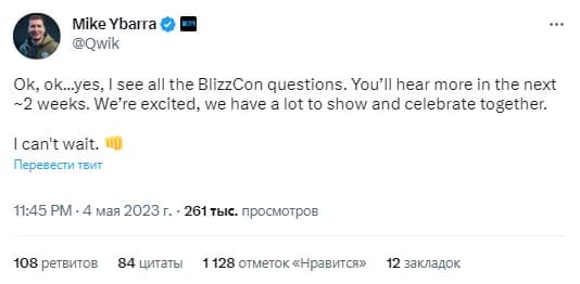 В отсутствие какой-либо конкретики игроки всё чаще задаются вопросами, которые дошли до президента Blizzard Entertainment Майка Ибарры, который ответил на них в коротком сообщении в Twitter. Он написал, что всё идёт своим чередом, и при этом пообещал, что компания сможет предоставить больше конкретики в течение ближайших двух недель (или около того).