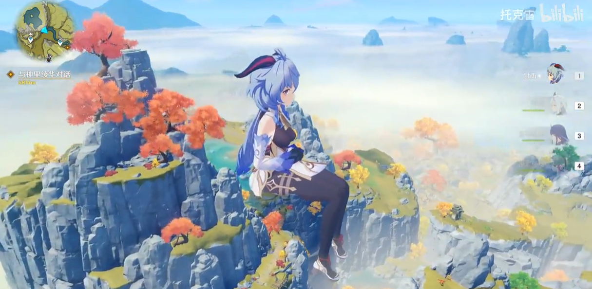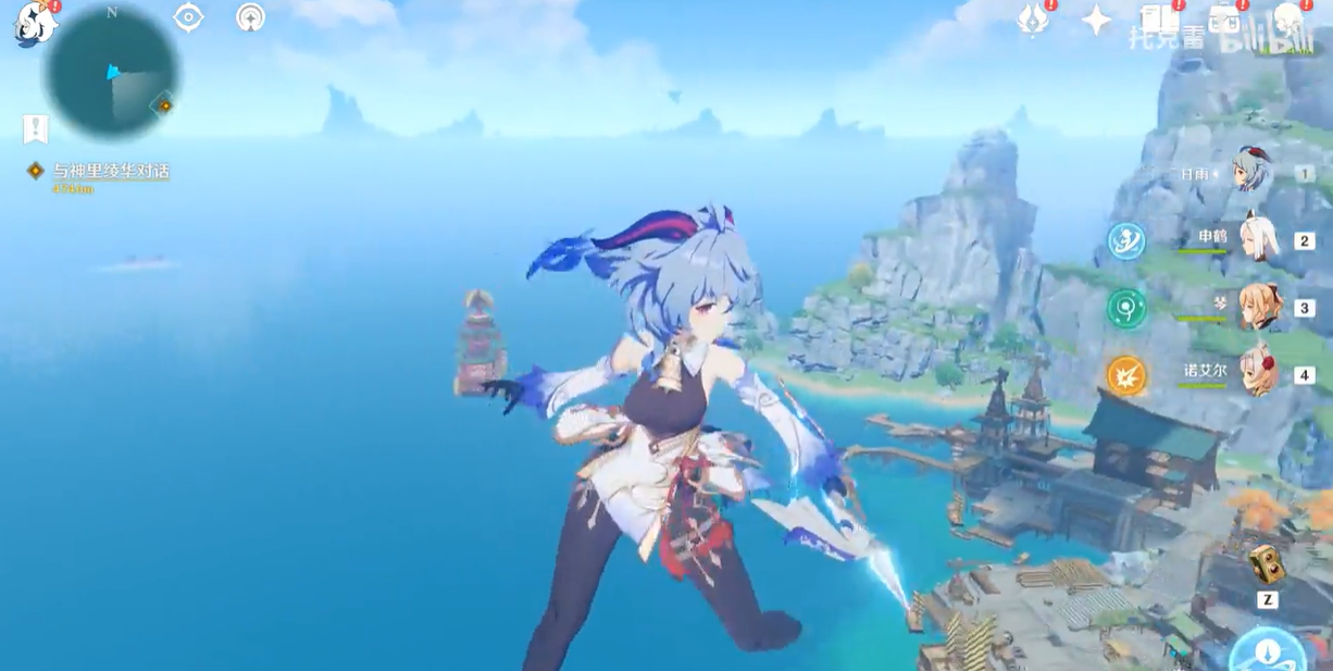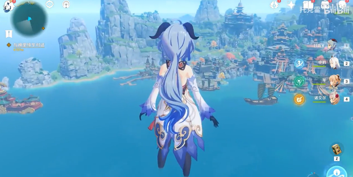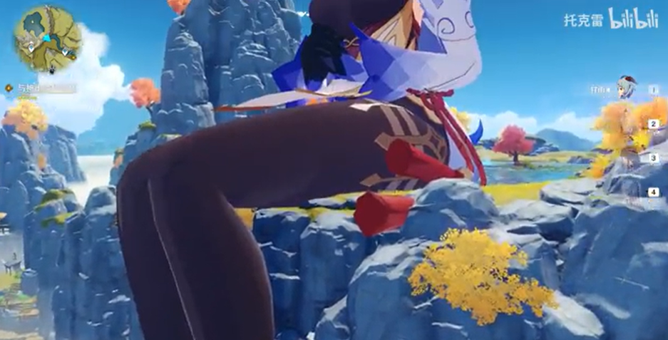 Вскоре Гань Юй устанет сидеть и решит прогуляться по миру Genshin Impact. Размер не помеха — героиня готова показать мастерство владения луком (оружие масштабировалось), хотя в некоторые моменты анимация подглючивает и героиня на мгновение исчезает.