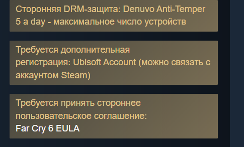 Far Cry 6 в Steam на момент публикации не получила достижения, зато в наличии система защиты Denuvo.