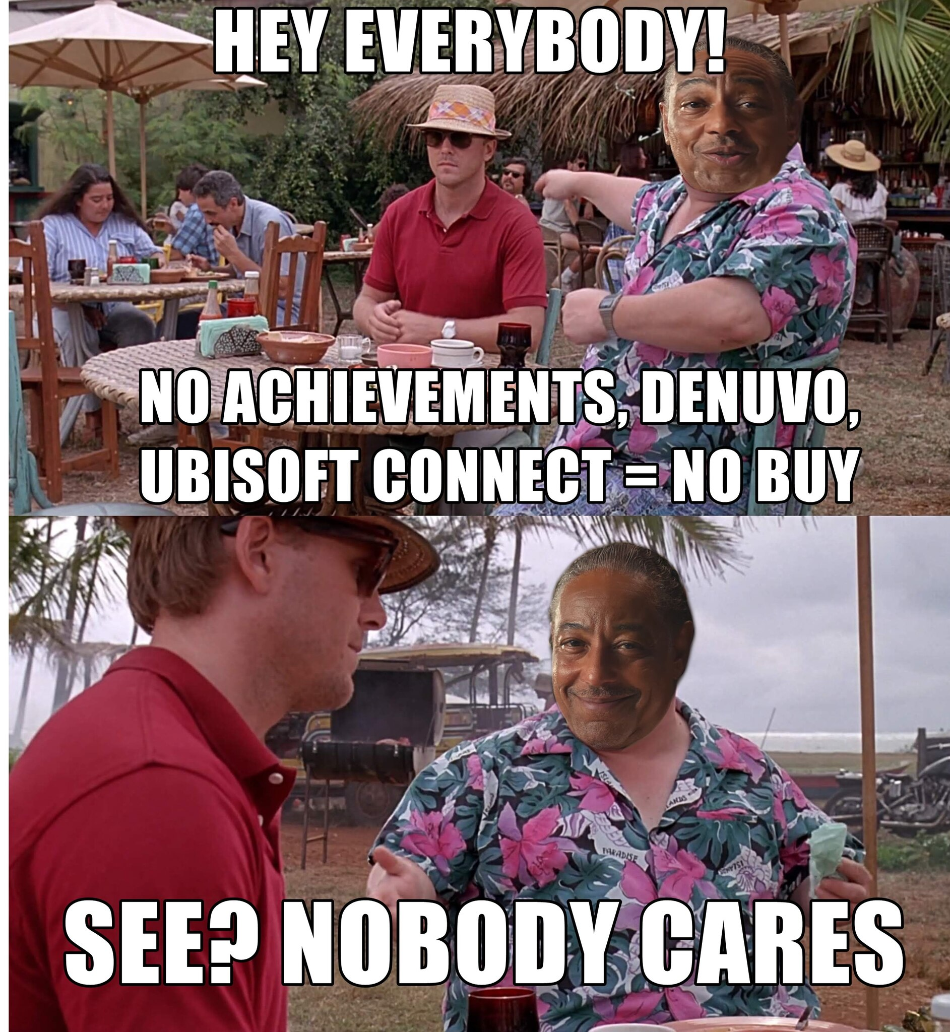 Far Cry 6 наконец вышла на ПК в Steam. На форуме Steam разработчиков из Ubisoft предупреждали, что следовало бы учесть прошлый негативный опыт с другими релизами и добавить достижения. В противном случае грозили применить штрафные санкции.