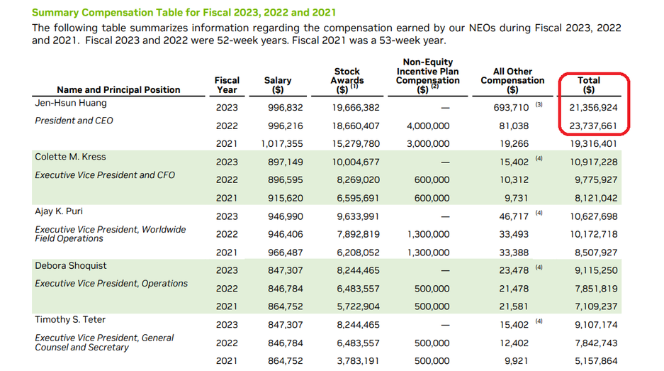 Журналисты изучают финансовую отчётность компании NVIDIA. Подметили интересную деталь, касающуяся расходов на обеспечение деятельности Дженсена Хуанга.
