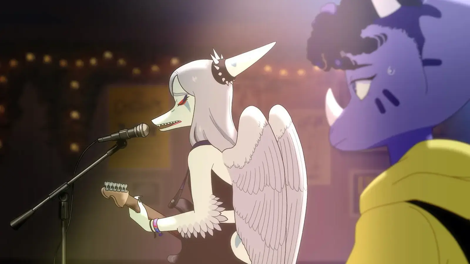 Частично ритм-игра, частично интерактивный фильм, Goodbye Volcano High рассказывает о группе начинающих музыкантов-динозавров в выпускной год. Главный герой – небинарный динозаврик Клык.