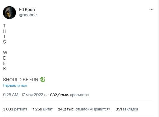 Эд Бун опубликовал в Твиттере тизер «На этой неделе должно быть весело». Судя по всему, анонс Mortal Kombat 1 состоится в ближайшие несколько дней.