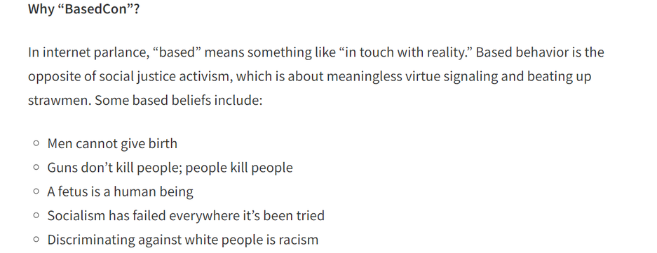 Создатели не скрывают, что они выступают против повестки (woke propaganda). На сайте мероприятия можно найти список интересных убеждений (в этом разделе).