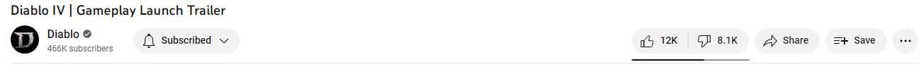 Blizzard опубликовала трейлер к скорому выходу Diablo 4, который состоится 6 июня на ПК, PlayStation и Xbox. На момент написания этих строчек, у ролика 12 тысяч пальцев вверх и больше 8 тысяч пальцев вниз.
