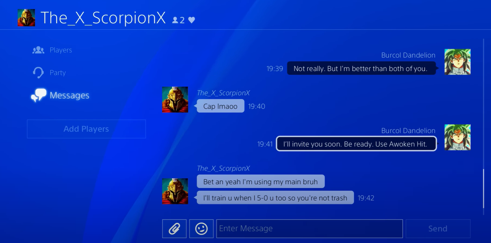 The_X_ScorpionX начал писать в личные сообщения Burcol, оскорбляя блогера и его ученика. Он вызвал Burcol на бой в Dragon Ball Xenoverse 2.
