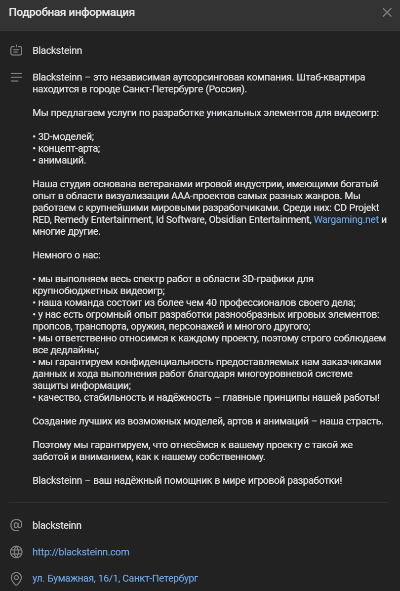 На сайте Blacksteinn в разделе с контактами указан Казахстан, вот только в VK есть одноимённое сообщество, где пишут: «Blacksteinn – это независимая аутсорсинговая компания. Штаб-квартира находится в городе Санкт-Петербурге (Россия)».