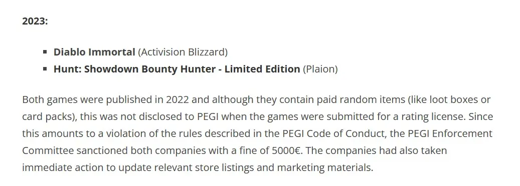 Поводом для штрафа послужило то, что Blizzard не сообщила о наличии в Diablo Immortal лутбоксов. Сумма штрафа относительно небольшая, лишь 5000 евро (пять тысяч).
