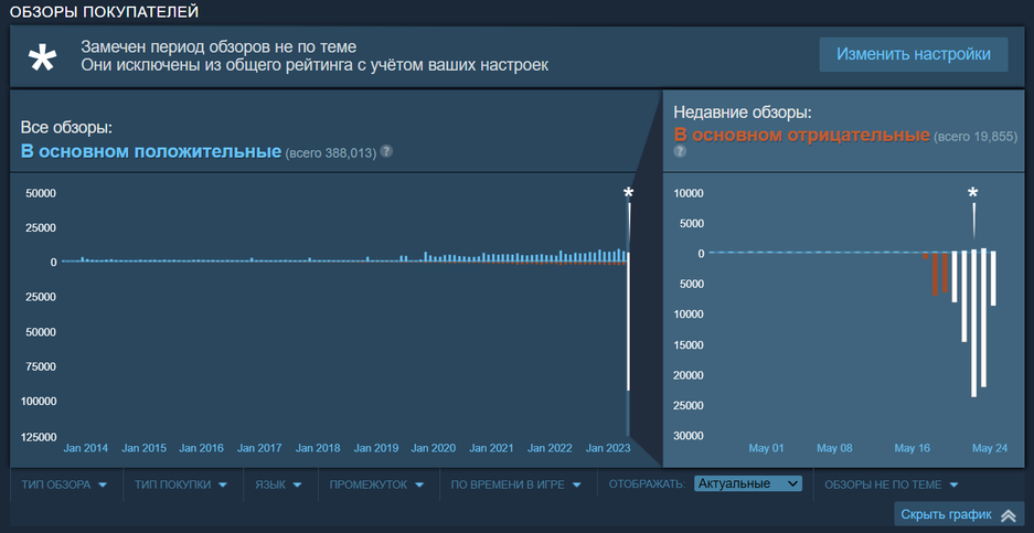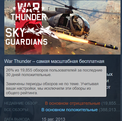 Фанаты War Thunder активно громили игру в Steam, оставив десятки тысяч обзоров. Их количество резко сократилось