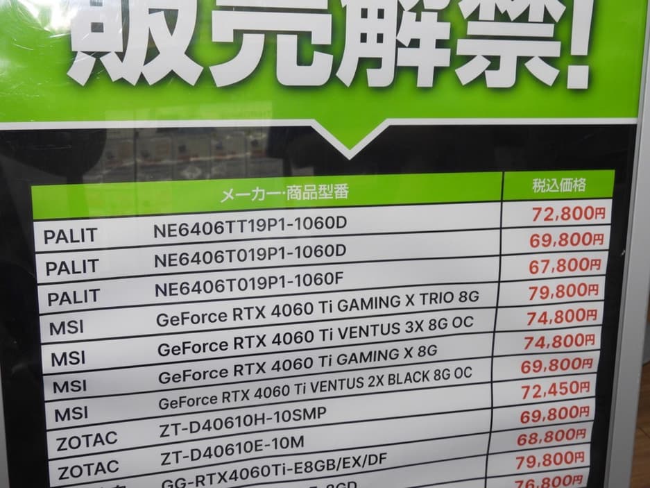 Розничная цена RTX 4060 Ti 8 GB составляет 399 долларов, а в Японии придется заплатить за от 500 до 570 долларов в зависимости от версии производителя. Напомним, согласно внутреннему тестированию Nvidia, новая модель в среднем в 2,6 раза быстрее RTX 2060 Super и в 1,7 раза быстрее RTX 3060 Ti.