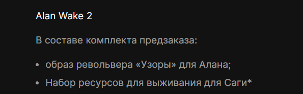 Другой интересный момент связан бонусами за предзаказ Alan Wake 2, предлагают: