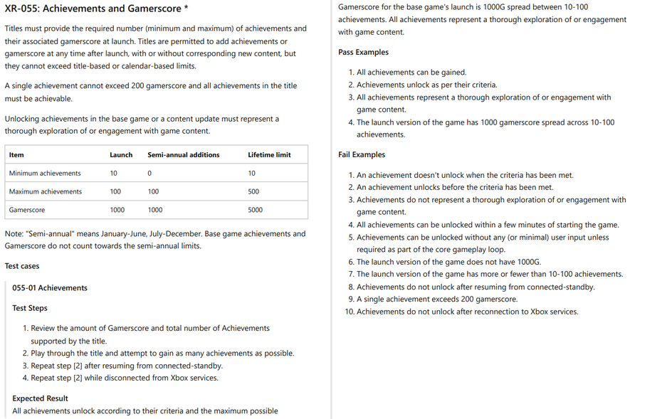 Отмечают, что изменения внесли в XR-055 в политике Xbox (раздел Achievements and Gamerscore на страницах 2661-62 можно найти здесь, а ниже представлен скриншот). Добавили три пункта (№3, 4, 5 на скриншоте справа).