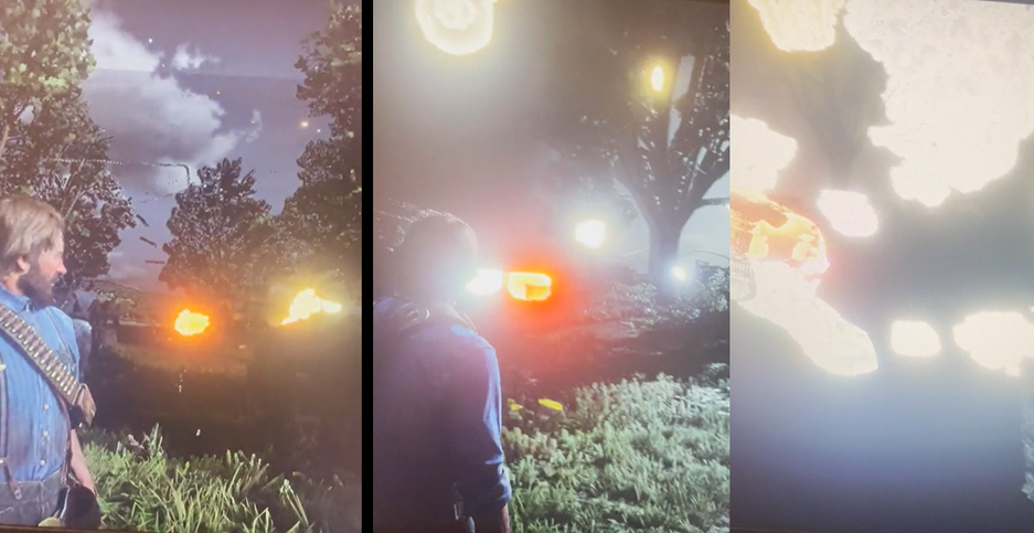 Дело в том, что изображение в Red Dead Redemption 2 начало довольно странно меняться. Начали появляться странные вспышки света, которые по началу можно ошибочно воспринять за салют, а затем образовалась цветная «каша».