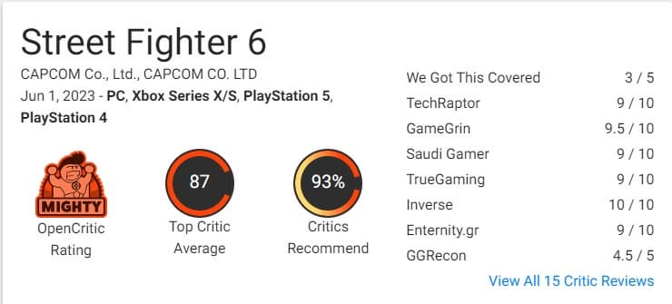 На портале-агрегаторе OpenCritic появились первые 15 обзоров – средняя оценка 87% и 93% критиков игру рекомендуют.