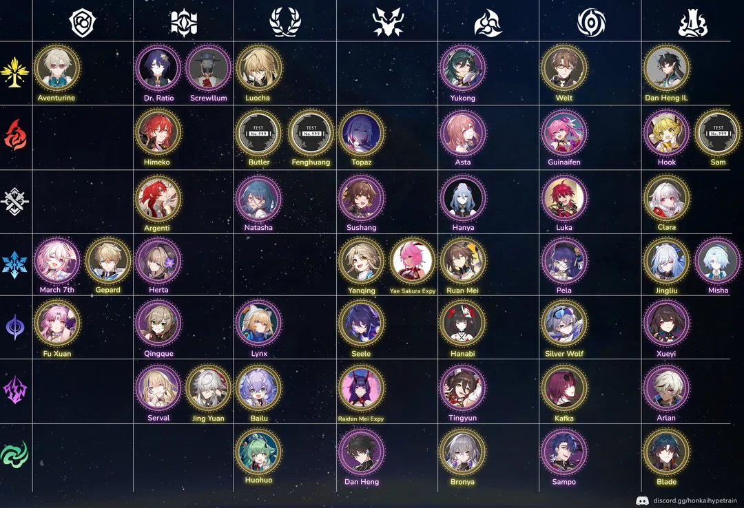 Сообщество Honkai Star Rail решило обобщить полученную информацию и отсортировать персонажей. В результате получилась табличка, в которой расположили персонажей в соответствии с их путём и элементом.