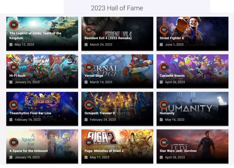 С начала 2023 года на рынке появилось несколько сильных игр, и самые высокие рейтинги получила The Legend of Zelda: Tears of the Kingdom. Остальные два места на пьедестале достались проектам Capcom.