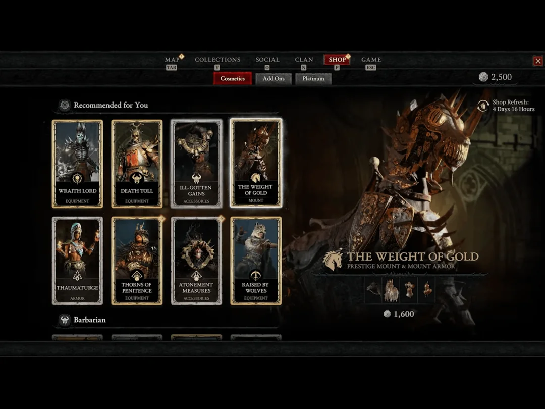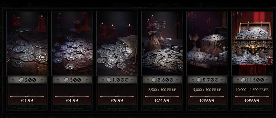 Можно сразу купить большой пакет виртуальной валюты Diablo 4 за 100 евро. 11500 платины должно хватить на несколько сетов.