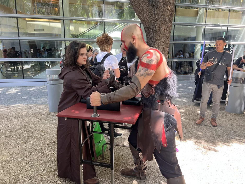 Wee-Taku посетил FanimeCon (Fanime 2023). Среди посетителей мероприятия был косплеер Кратоса, который предлагал помериться силами.