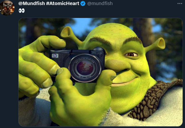 Создатели Atomic Heart опубликовали загадочный тизер. Сообществу представили Шрека, который смотрит на зрителей через объектив камеры.