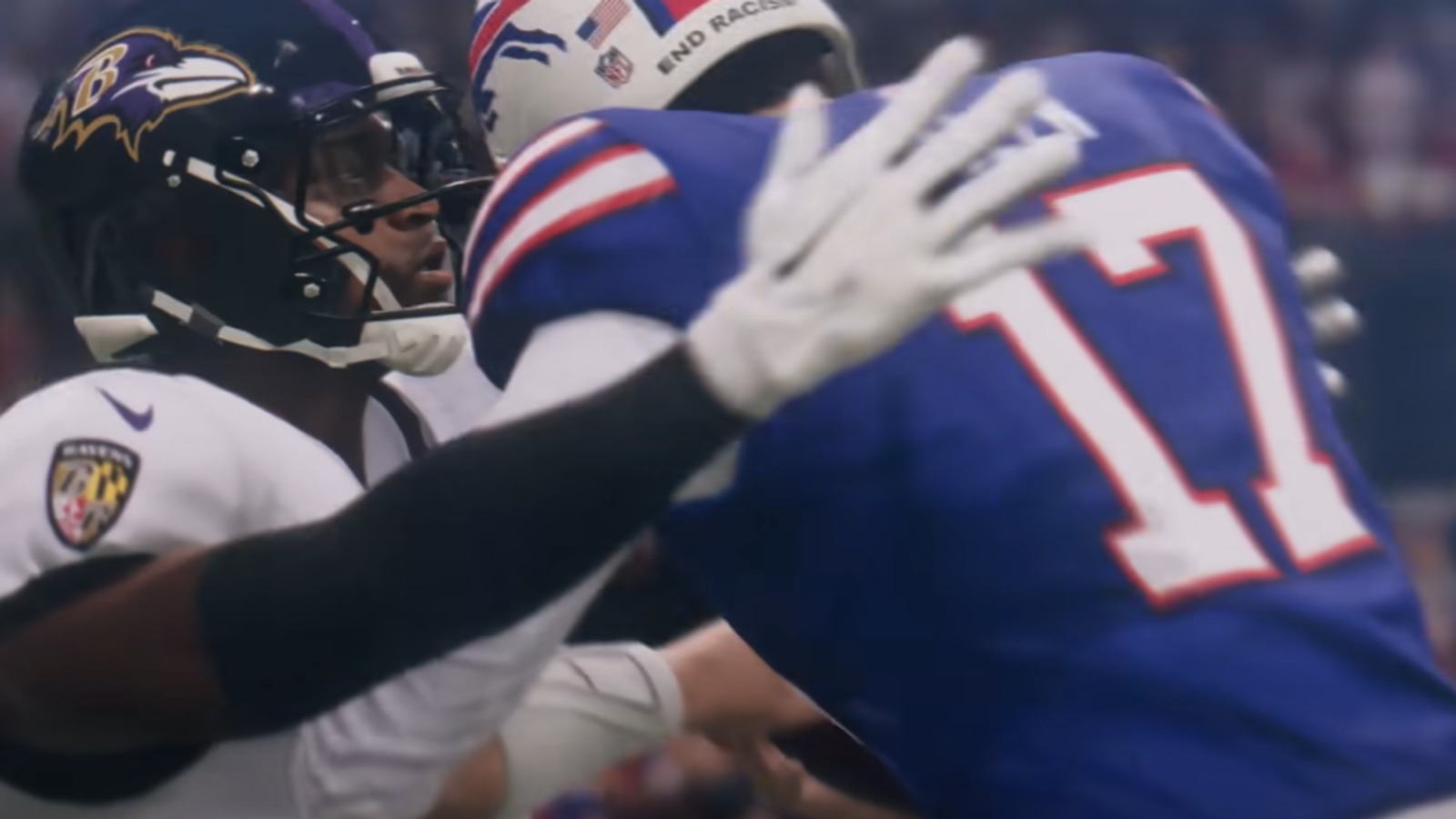 Тем временем некоторые рассматривают обложку Madden NFL 24. На ней оказался Джош Аллен (Josh Allen), но внимание привлёк не сам американский футболист, а его форма. При ближайшем рассмотрении оказалось, что со шлемом что-то не так.