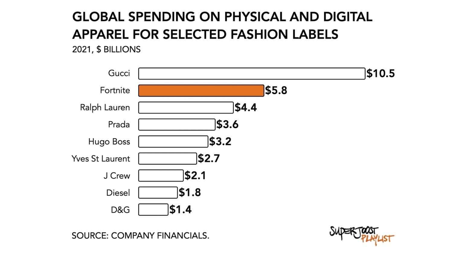 Оказывается, Fortnite занимает второе место по продажам одежды в сравнении с такими мега-брендами, как Gucci, Ralph Lauren, Prada и Hugo Boss.