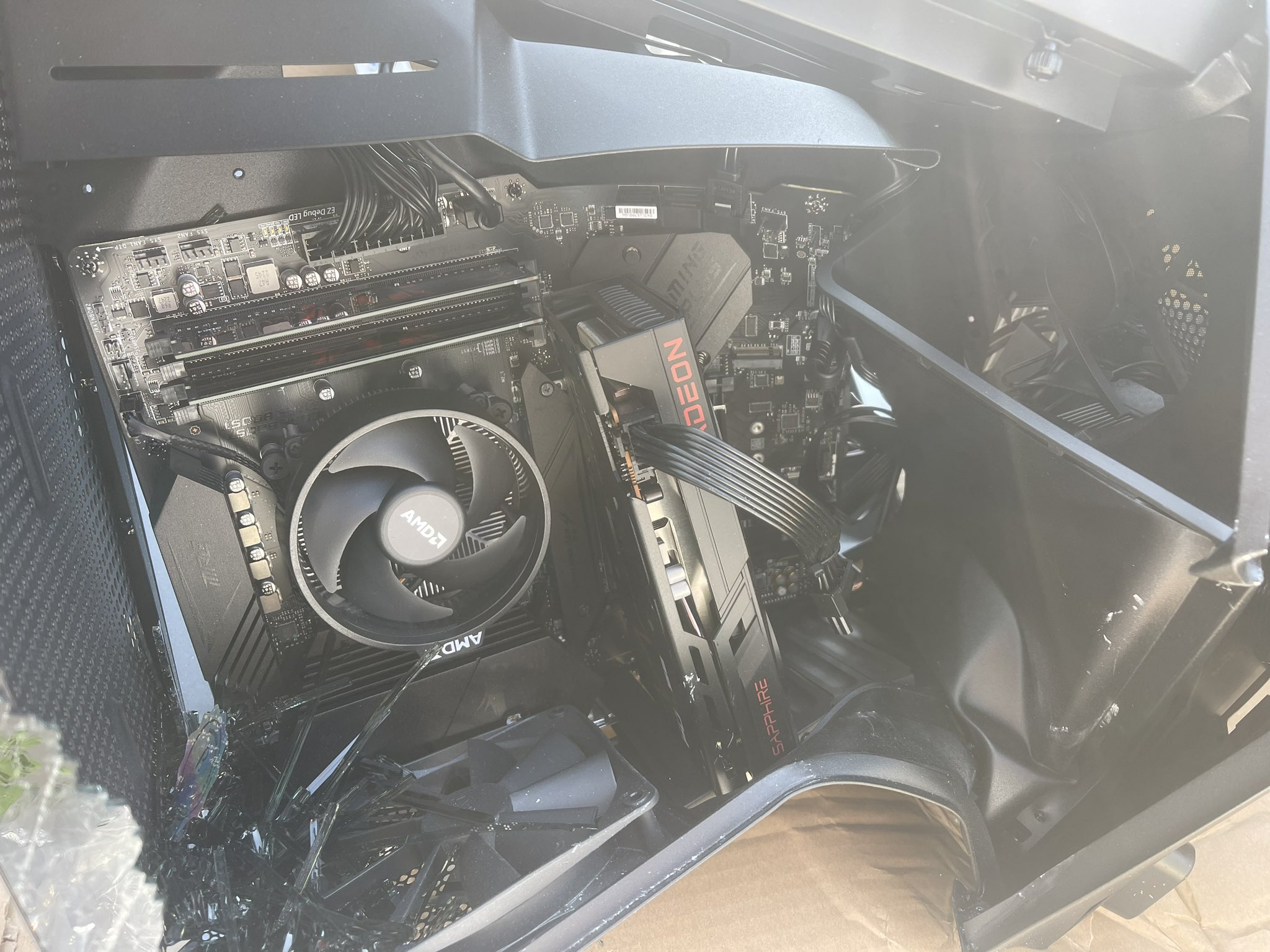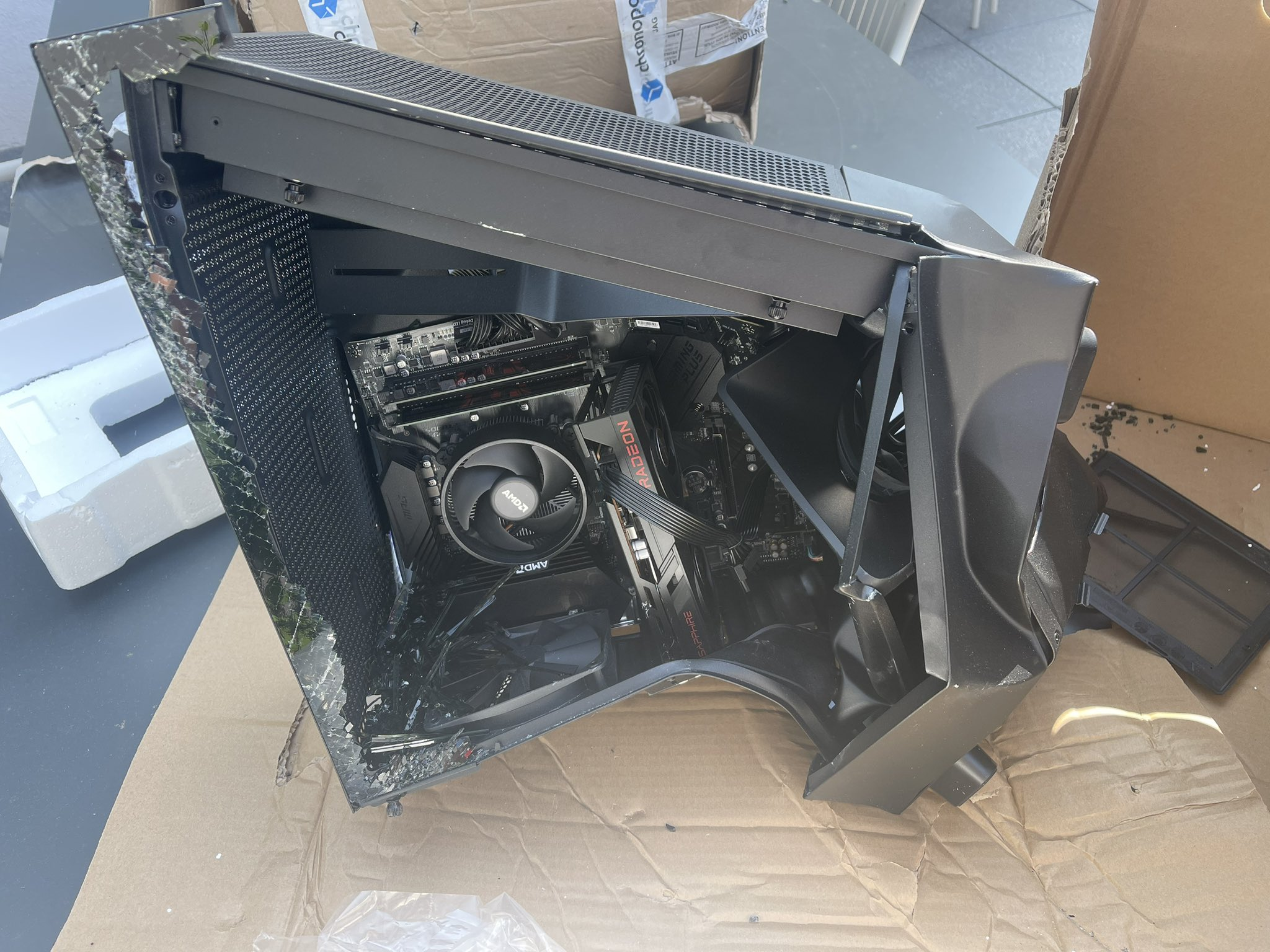В результате Tom Sibold получил весьма помятую коробку, но посылку он всё же забрал. Внутри его ждал игровой ПК, вот только радости при распаковке он так и не испытал.