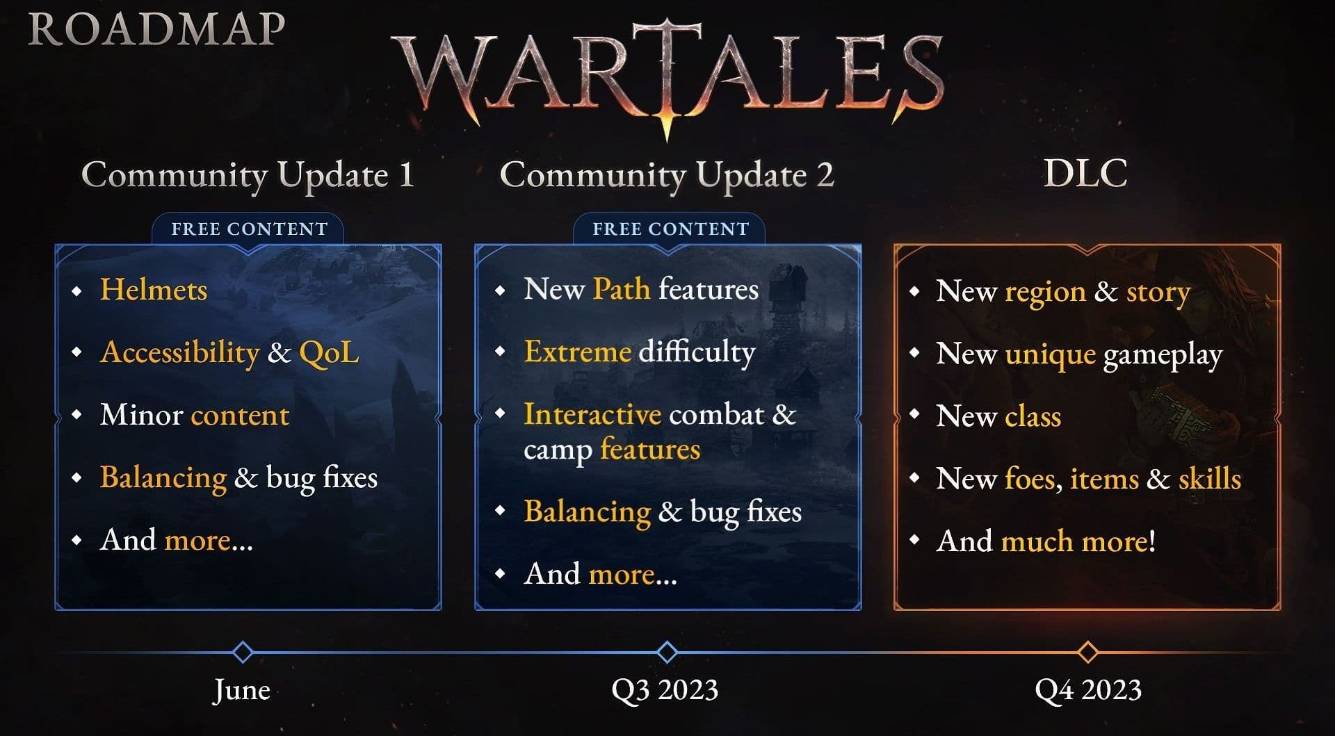 - В третьем квартале 2023 года игра получит второе обновление: новые Пути, экстремальные уровни сложности, интерактивные бои и особенности лагеря, улучшения баланса и исправление ошибок.