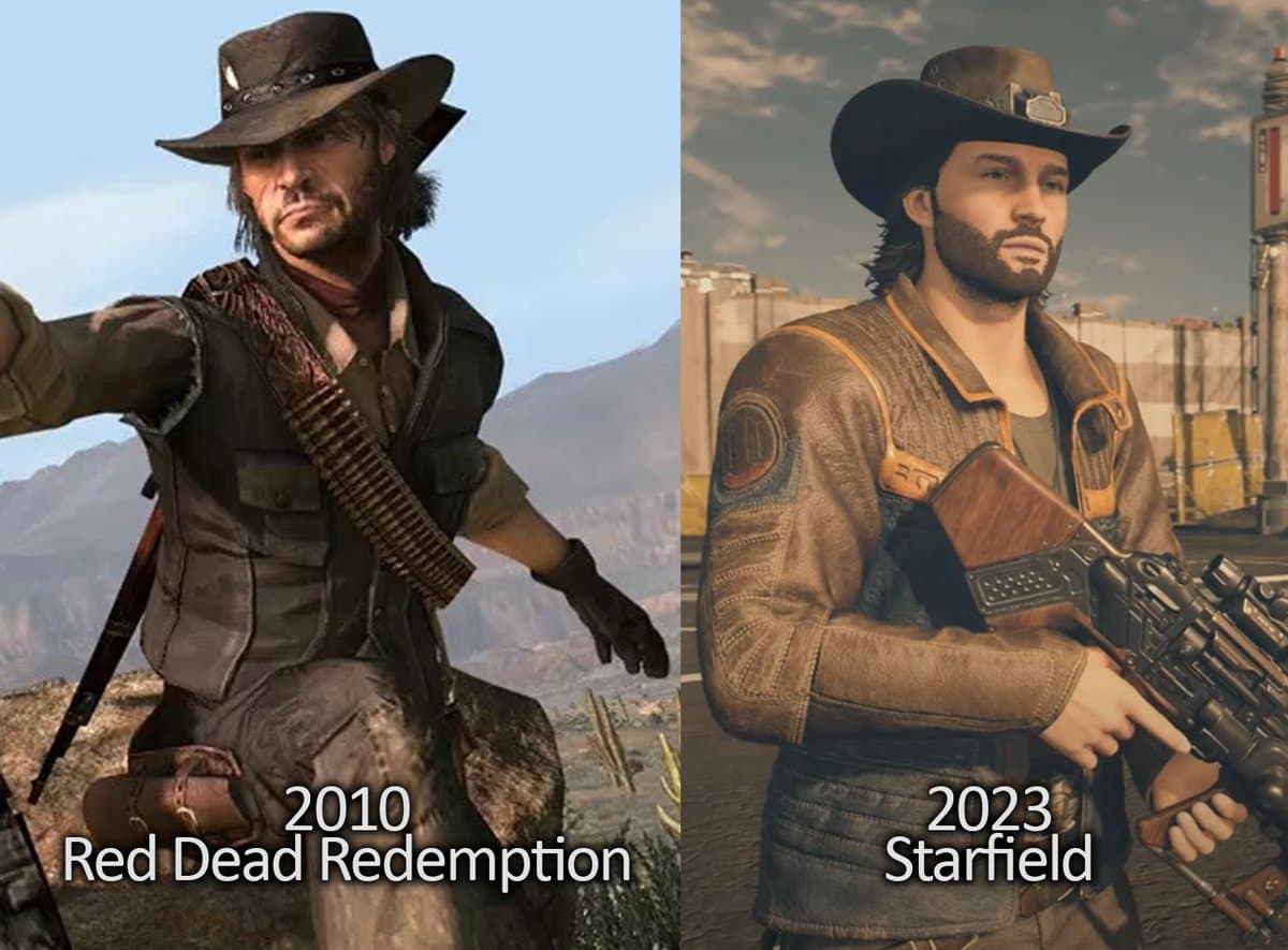 Сравнили кадр из Red Dead Redemption (2010) и Starfield (2023): «Вот почему мы обновляем движки при создании новых игр [Bethesda вновь использует Creation Engine]».