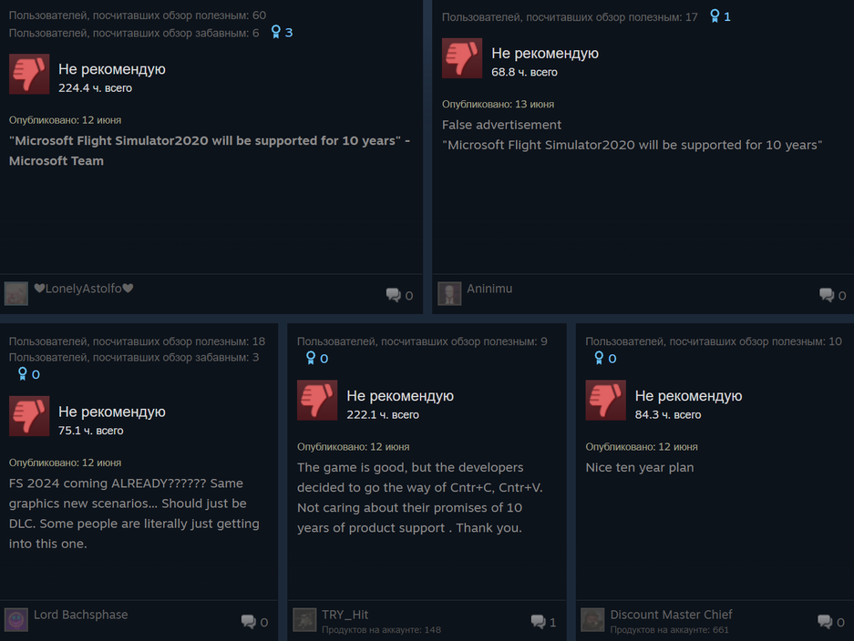 Покупатели Microsoft Flight Simulator напомнили, что когда-то звучали лозунги в духе «поддержка игры будет длиться 10 лет» (например, есть такой материал от 2019 года). Однако уже в 2023 году анонсируют Microsoft Flight Simulator 2024.