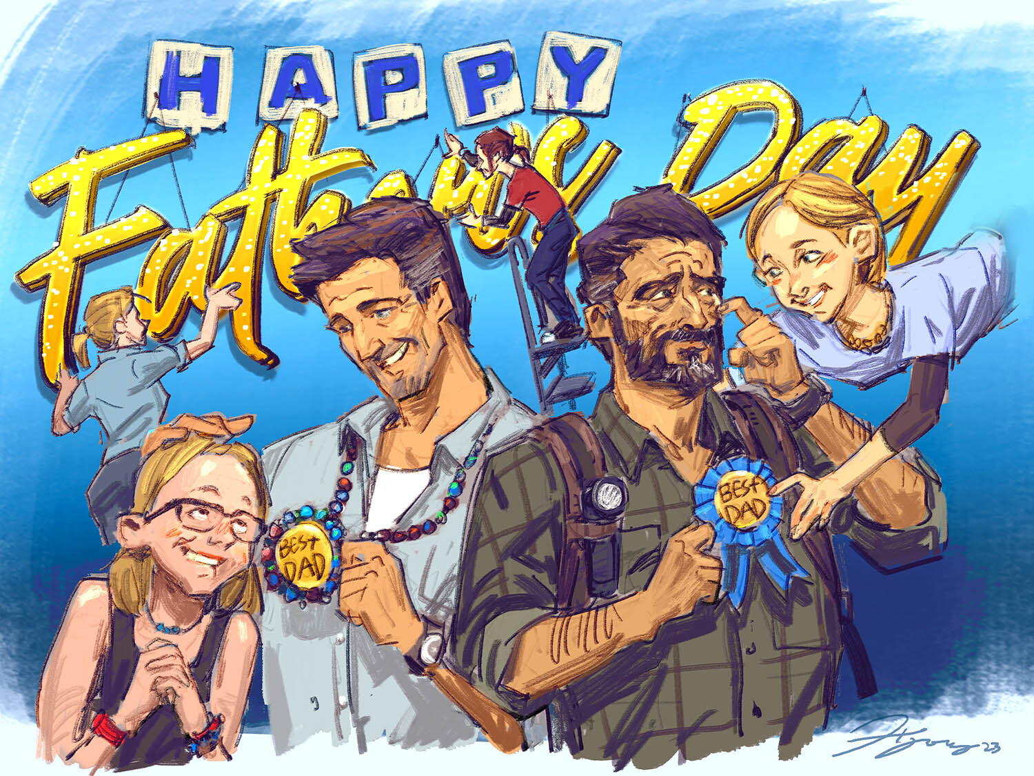 Naughty Dog решила отпраздновать день отца. В социальной сети опубликовали изображение с персонажами из серий The Last of Us и Uncharted.